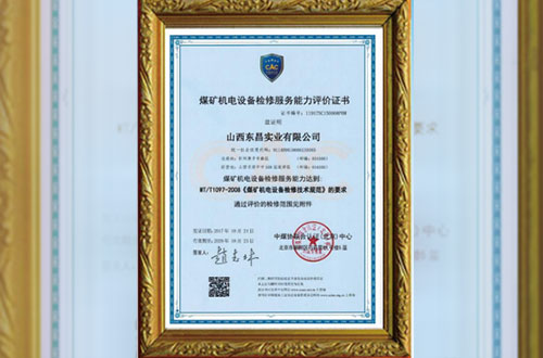 煤礦機電設備檢修服務能力評價證書